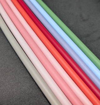 今までにないかわいい断面の駆血帯です。かわいいだけでなく素材感、硬さ、肌ざわり、伸びなど100人以上の医療従事者の意見を参考にして約1年、10回以上の試作を重ね商品化しています。